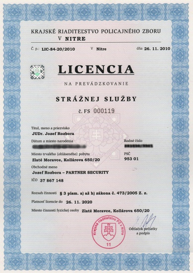 Súkromná bezpečnostná služba Jozef Rozbora – PARTNER SECURITY, Kollárova 650/20, 953 01 Zlaté Moravce, +421 908 727 100